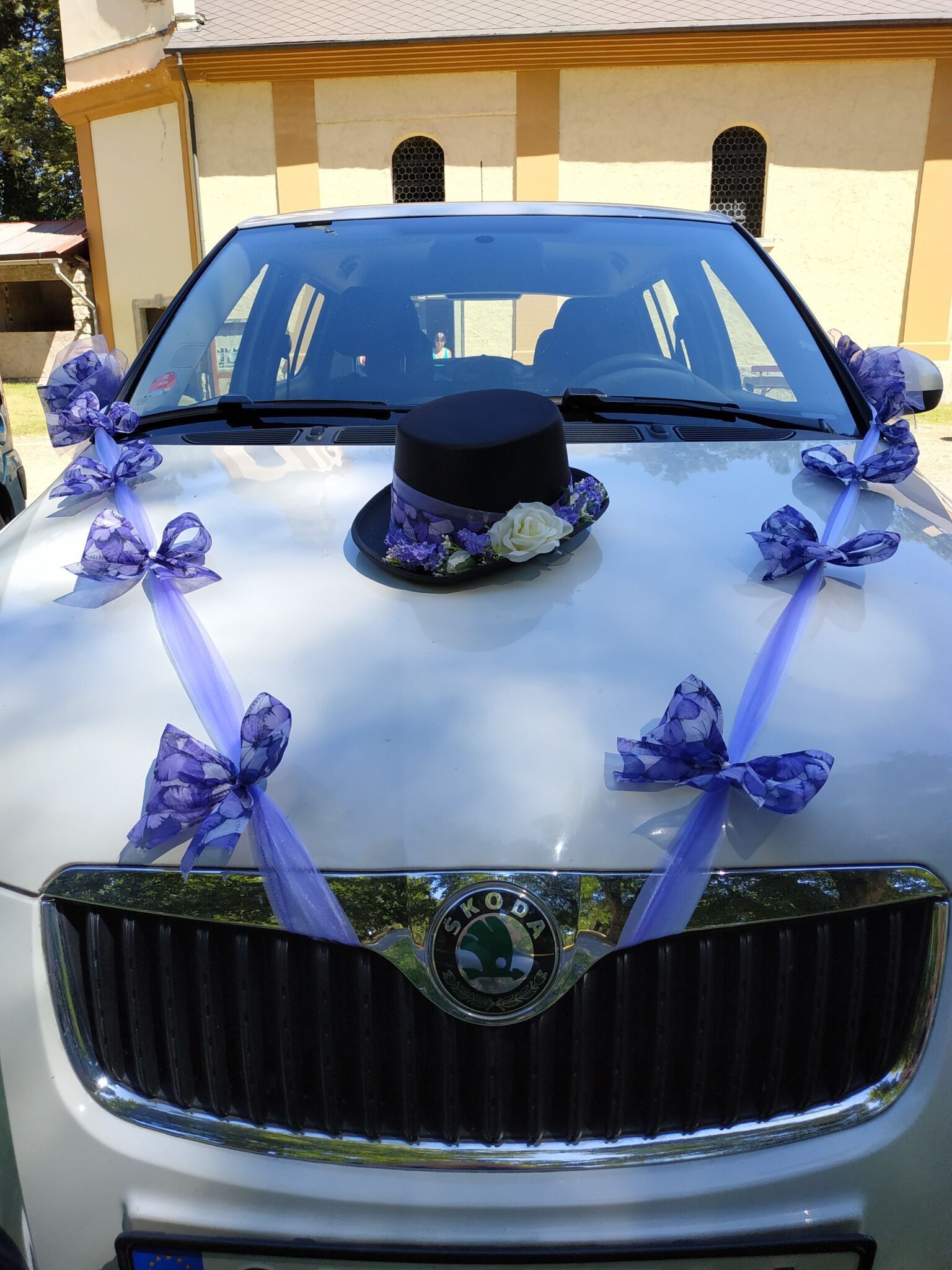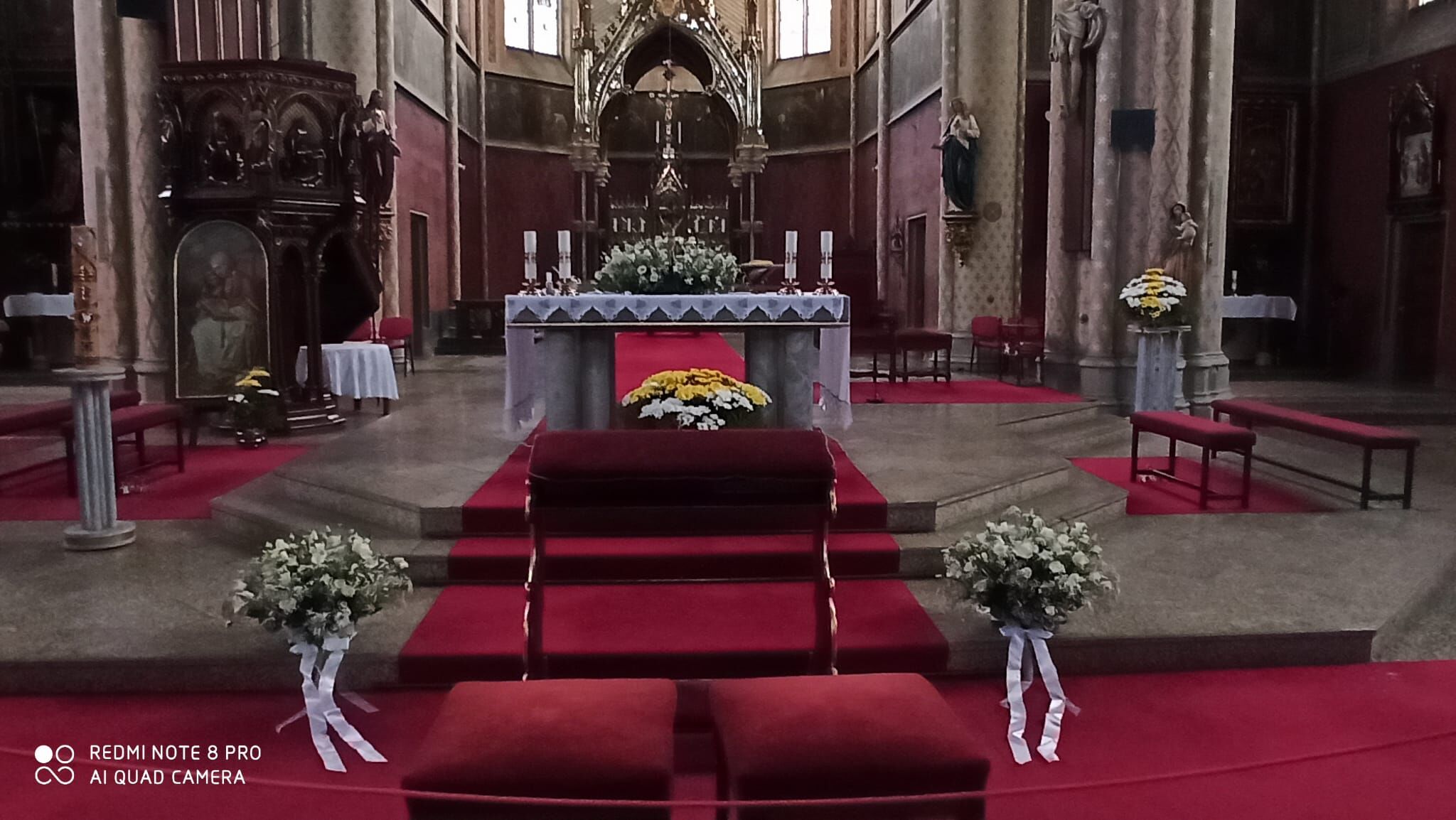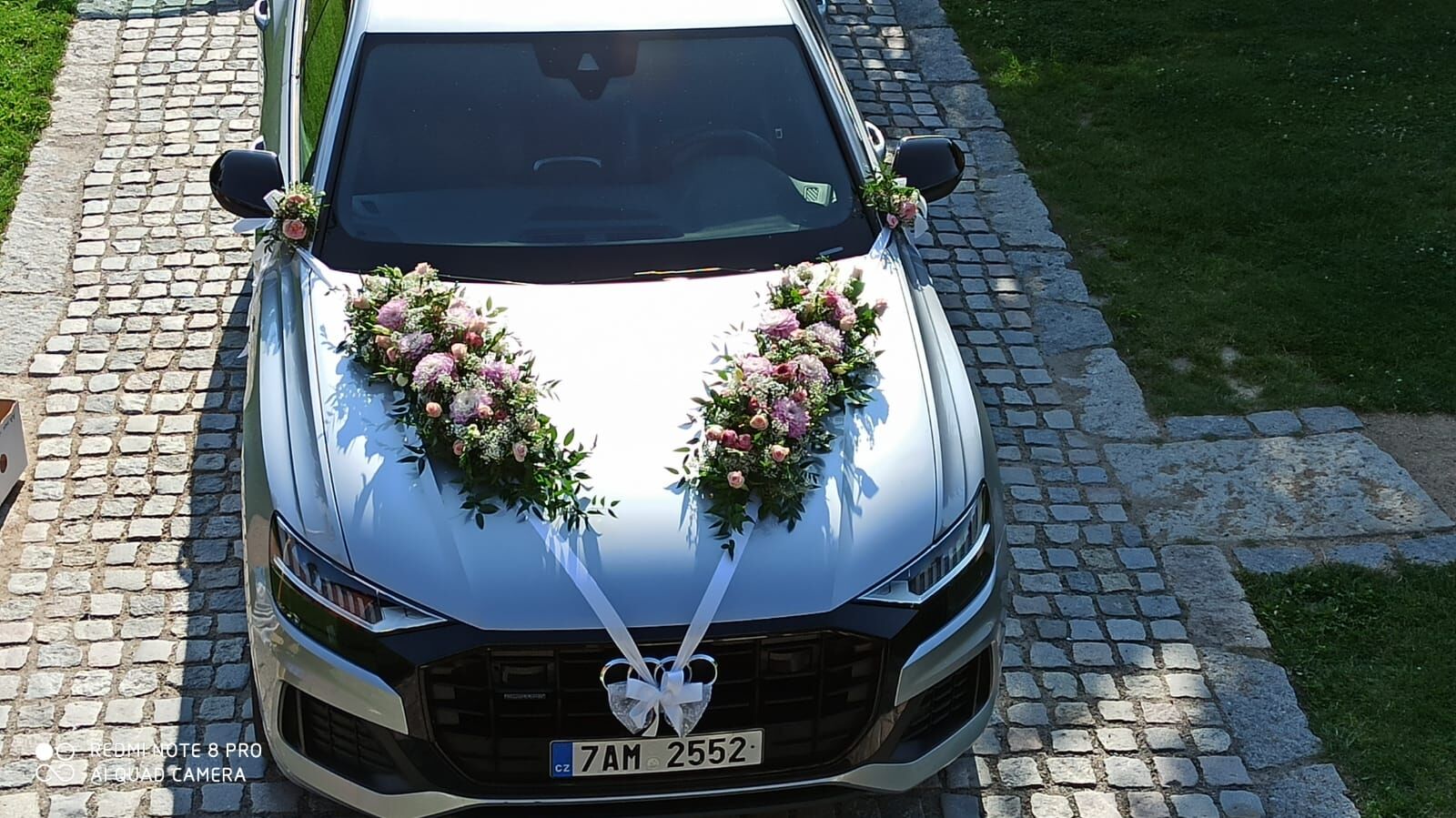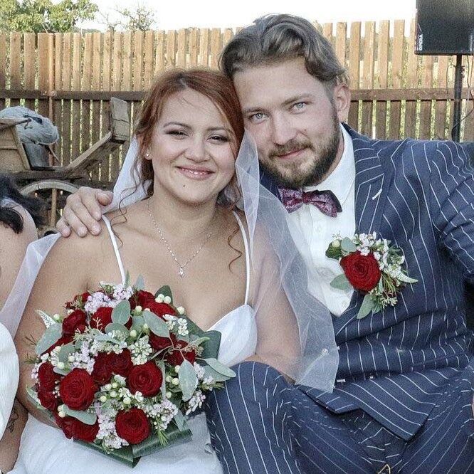 Tato svatba v kostele byla velkolepá. Kombinace jiřin, alstromerií,a růží v kytcích a bílých alstromerií a gypsophily ve výzdobě kostela. Honosně ozdobená auta vezla svatebčany z Prahy na venkov na hostinu.