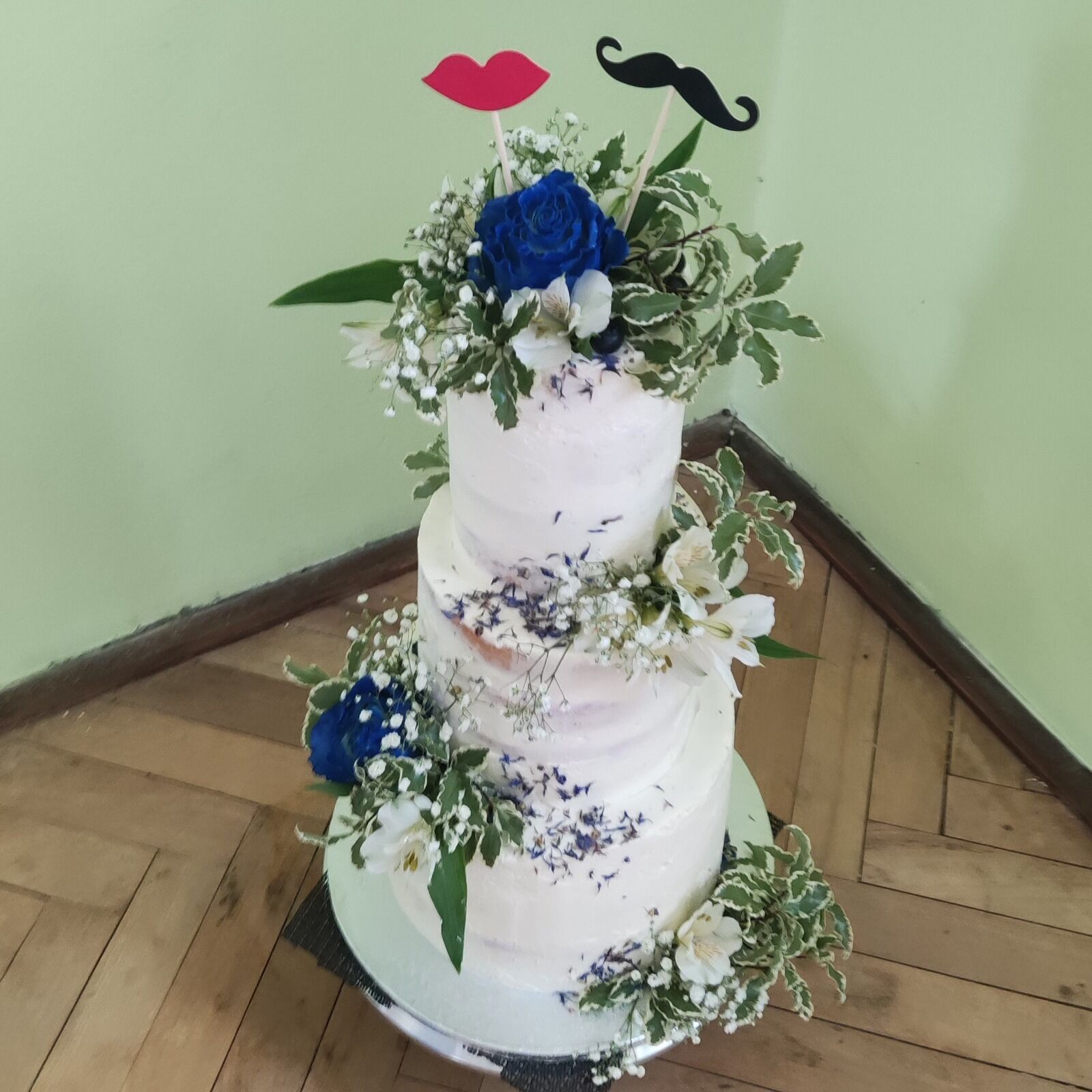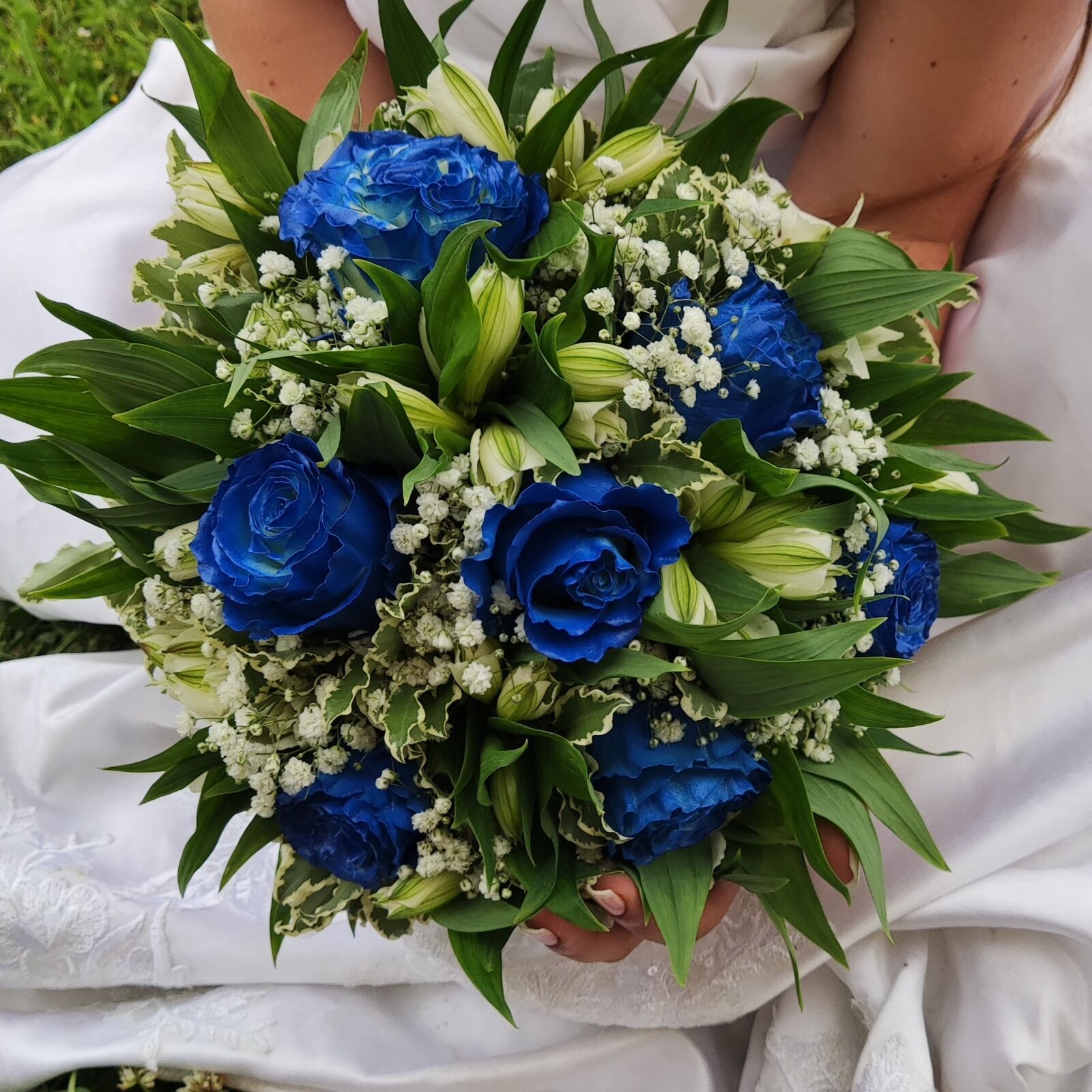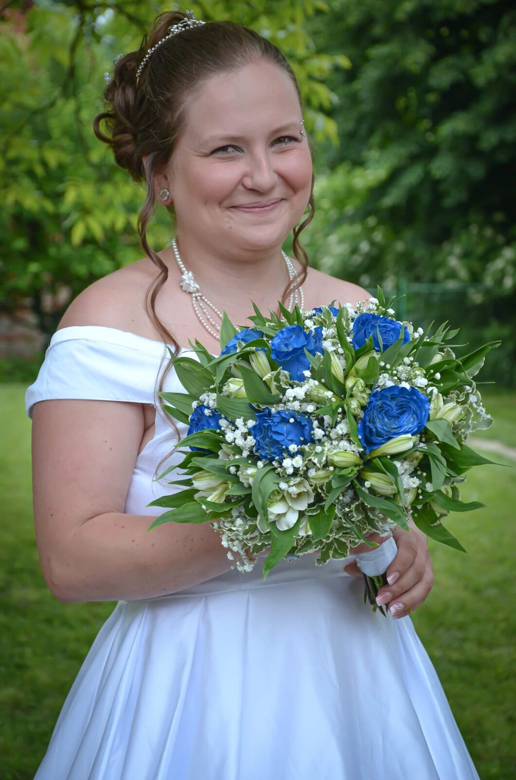 Modré, to není úplně obvyklá svatební barva, ale přání nevěsty bylo modré růže.