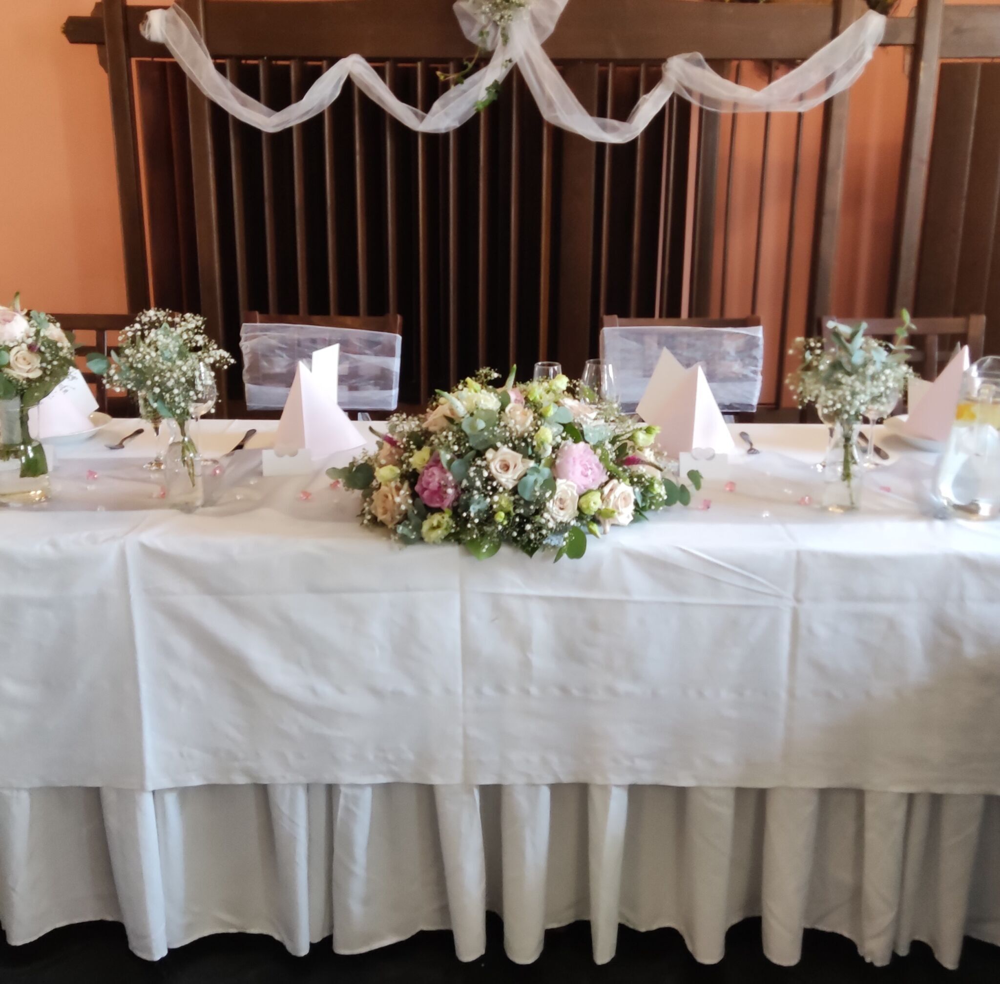 Každá svatba je jiná. Někdy stačí několik jemných květinových detailů, jindy vznikne větší dekorace, která určí charakter celého prostoru.